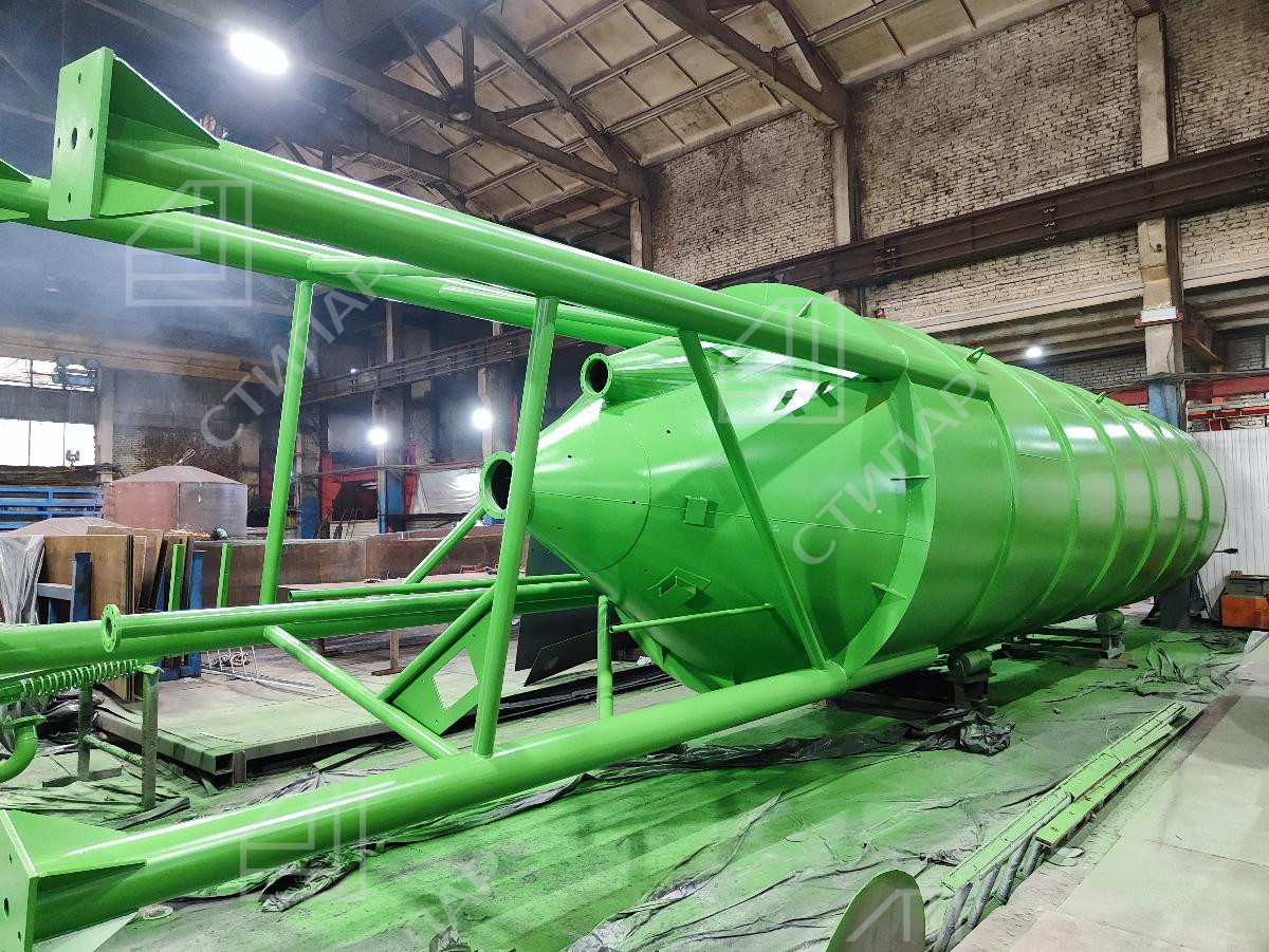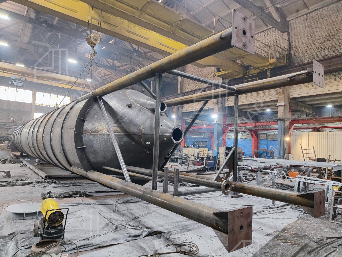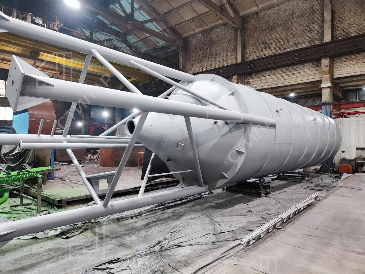 В марте 2026 года мы реализовали проект по изготовлению силоса башенного типа для хранения цемента. Данный силос с объемом 60+50 кубических метров был изготовлен за 18 дней.